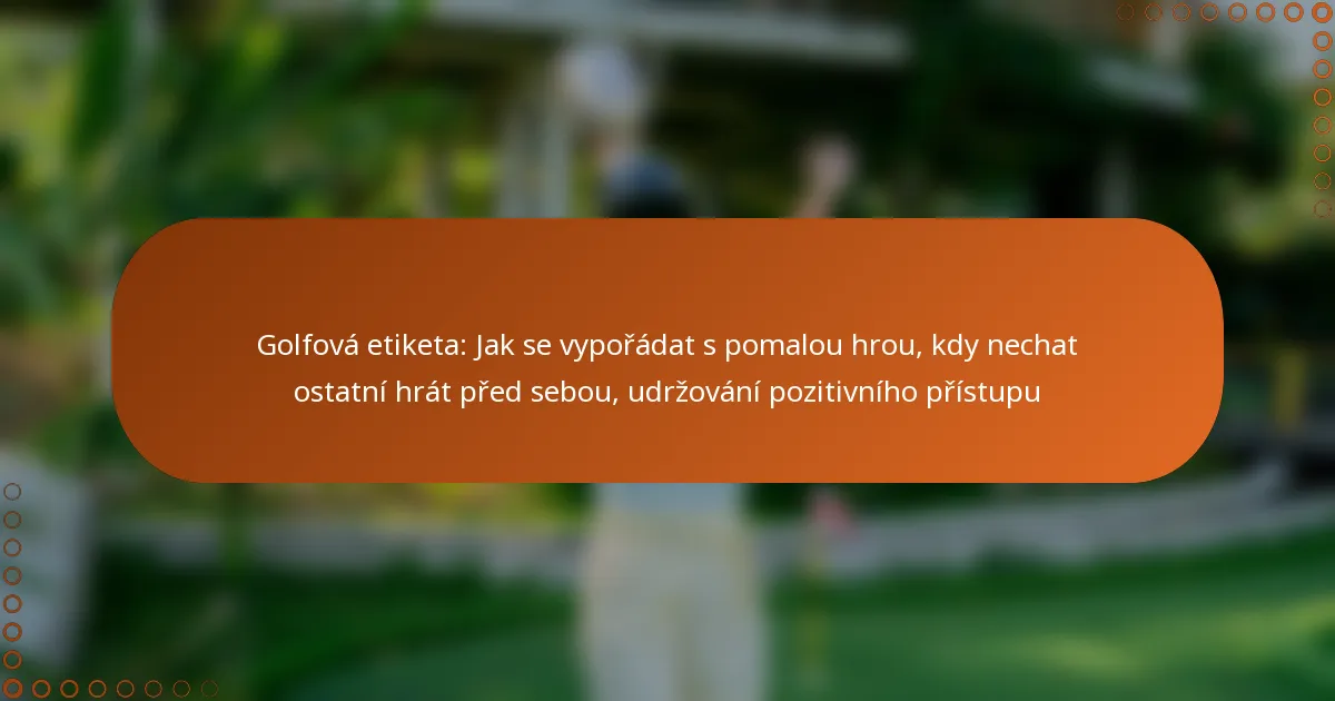 Řešení pomalé hry na golfovém hřišti vyžaduje uvědomění, trpělivost a efektivní komunikaci. Pochopení, kdy nechat ostatní hrát, a udržení pozitivního přístupu může zlepšit zážitek pro všechny zúčastněné.