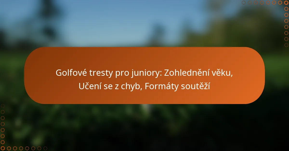 Golfové tresty pro juniory: Zohlednění věku, Učení se z chyb, Formáty soutěží